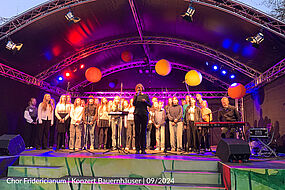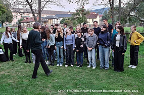 Zunächst hatten die Wetterprognosen düstere Bilder gezeichnet - letztendlich wurde es ein wunderschöner Spätsommerabend, der auch dieses Konzert zu einem schönen Erlebnis machte. Obwohl einige Choristen krankheitsbedingt ausgefallen waren (da wirkten wohl noch die vielen Aktivitäten rund ums Schuljubiläum nach ...) - fand unser Konzert beim Publikum großen Anklang. Dass dann doch nicht so viele Zuhörer im Vergleich zum Releasekonzert eine Woche zuvor zu uns finden würden, war uns klar, aber es waren dann doch mehr, als wir erwartet hatten - zumal der Termin kurz zuvor auch noch um einen Tag vorverlegt worden war.