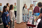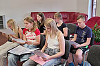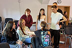 Der Montag startete - wie an jedem Tag - mit einem leckeren Frühstück um 08.00 Uhr - alle waren (wie an jedem Tag) pünktlich am Tisch. Danach gab es noch etwas Freizeit (Tischkicker und Tischtennis waren sehr beliebt) - auch Hausaufgaben wurden in dieser Zeit erledigt, bevor 09.30 Uhr der Probentag mit einem aktivierendem Einsingen begann. Anschließend wurde zusammen oder in den Stimmgruppen geprobt.