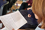 Nach dem ersten Abendessen startete die erste abendliche Probenrunde mit dem Mitlesen der neuen Arrangements, die noch im Herbst aufgenommen werden sollen, damit das neue Choralbum pünktlich zum Releasekonzert im April erscheinen kann.