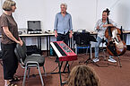 Der Chorlagerdienstag war ein wirklich besonderer Tag, denn an diesem Tag wurde nicht am eigenen Repertoire gearbeitet (nur am Abend). Zu Gast waren drei großartige Musiker - Koryphäen auf ihren Instrumenten und ganz tolle Musikvermittler - ein Kontrabassprofessor aus Weimar, ein Jazzklaviervirtuose aus Berlin und eine junger Beatboxer, Produzent und Songwriter auch aus Berlin.