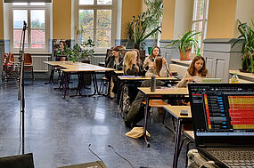 Wenn gerade etwas frisch einstudiert - sozusagen noch "warm" ist, soll man dies ja bekanntlich nutzen. Da der Termin zum Silbernen Abitur kurzfristig ausgefallen war, wurde das Wochenende eben für weitere Aufnahmen genutzt. Da die einzelnen Stimmgruppen separat aufgenommen wurden, trafen die Chorsänger (inkl. einiger der "Neuen") von Freitag - Sonntag einzeln ein, um ihre Parts bei den Songs von MINE und KLAN einzusingen. Das klappte erstaunlich schnell und unkompliziert und war jedes Mal zeitlich gesehen eine Punktlandung. BRAVO!