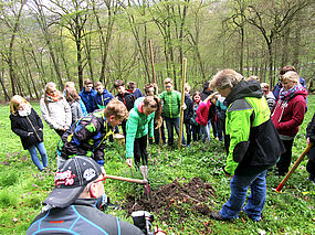Dort haben wir mit einem kleinen Programm vor Großeltern und Forstmitarbeitern den Baum des Jahres 2016 - die Winterlinde - vorgestellt. Unter fachkundiger Anleitung wurden dann 2 Winterlinden im Arboretum gepflanzt. Bereits im März führten wir dort einen Projekttag durch und befreiten die Wiesen von Laub, Ästen sowie auch Müll.
