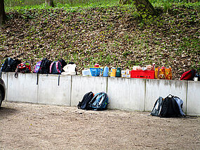 Nach der entdeckungsreichen Waldrallye hat unsere ganze Klasse zusammen Würstchen über dem Lagerfeuer gegrillt.