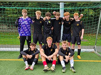 Angetreten waren 6 Teams aus dem Landkreis. Gespielt wurde im modus "Jeder gegen jeden". Das Eröffnungsspiel gegen das Erasmusgymnasium war gleich eine Weichenstellung, wer um Platz eins spielen wollte. Unser Team war mit Anpfiff richtig in Spiellaune und wurde mit 2:0 gewonnen. Gegen das Gymnasium Königsee wurde die Linie beibehalten - aus einer sicheren Defensive heraus, mit schnellem Spielaufbau, zum Abschluss finden. 3:0 Endstand. Beim Spiel gegen das ersatzgeschwächte Team der RS Unterwellenborn durfte jeder am Torkonto beteiligt sein - 16:0 hieß es am Ende. Nach diesem einfachen Spiel kam es zur zweiten Vorentscheidung im Spiel gegen das Böllgymnasium. Beide Teams agierten hochmotiviert aber ohne echte Chancen. Mit einem spannenden 0:0 trennte man sich und somit stand unser Team schon vor dem letzten Spiel als Turniersieger fest. Mit einem 3:1-Sieg über die RS Gräfenthal unterstrich man den Turniersieg und freut sich über den Einzug ins Schulamtsfinale am 14. Mai 2025 in Saalfeld.