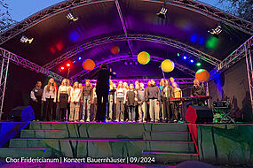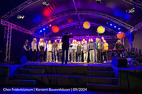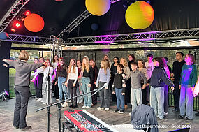 Zunächst hatten die Wetterprognosen düstere Bilder gezeichnet - letztendlich wurde es ein wunderschöner Spätsommerabend, der auch dieses Konzert zu einem schönen Erlebnis machte. Obwohl einige Choristen krankheitsbedingt ausgefallen waren (da wirkten wohl noch die vielen Aktivitäten rund ums Schuljubiläum nach ...) - fand unser Konzert beim Publikum großen Anklang. Dass dann doch nicht so viele Zuhörer im Vergleich zum Releasekonzert eine Woche zuvor zu uns finden würden, war uns klar, aber es waren dann doch mehr, als wir erwartet hatten - zumal der Termin kurz zuvor auch noch um einen Tag vorverlegt worden war.