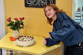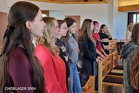 In diesem Jahr waren wir mit einer großen Chorgruppe angereist - zum Glück hatten wir Laura dabei, die uns auch in diesem Jahr wieder tatkräftig bei der Probenarbeit unterstützte und vor allem mit den Altist:innen arbeitete. Das ist schon sehr besonders, wenn sich jemand extra Urlaub nimmt, um mit uns die freie Zeit auf dem Berg zu verbringen. Der nun wieder größer gewordene Chor war jedenfalls motiviert, an neuen Songs zu arbeiten.