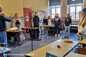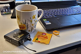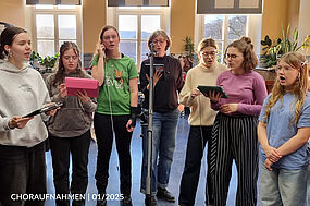 Die Aufnahmen gingen zügig und in guter Neujahrstimmung vonstatten - die einzelnen Stimmgruppen waren sehr gut vorbereitet. Eine gewisse Aufnahmeroutine (im positiven Sinne) war zu spüren ...