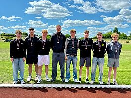 In der Wettkampfklasse U14männlich konnten durch kurzfristige Absagen ebenfalls nur acht Schüler unsere Schule repräsentieren, jedoch kompensierten sie dies bravourös. Sie lieferten sich starke Zweikämpfe, vor allem in der 4x50m-Staffel, dem 50m-Sprint und dem Schlagballwurf. Voller Spannung wurde das Ergebnis erwartet und der Lohn der Anstrengungen war der zweite Platz und die Silbermedaille.