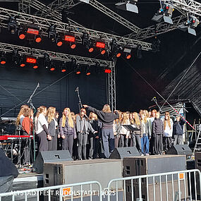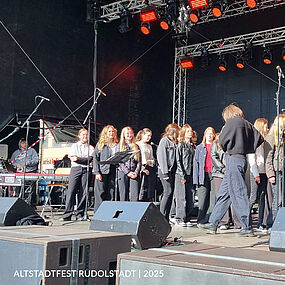 Die Stadt Rudolstadt berichtet sehr euphorisch auf ihrer Altstadtfestwebseite über den Kurzauftritt des Chores Fridericianum, der am 23.05.2025 am zeitigen Abend über die Bühne ging. Zum wiederholten Mal war der Chor an diesem städtischen Jahreshöhepunkt beteiligt. Die Wertschätzung, die damit verbunden ist, wissen der Chor und die ChorleiterInnen sehr zu würdigen. Der Chor freut sich bereits auf ein nächstes Mal ...