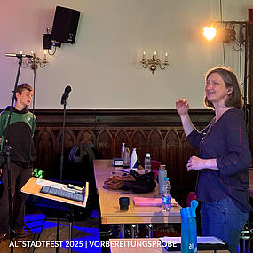 Der Chor jedenfalls bedankt sich bei allen Organisatoren, Technikern, BetreuerInnen, dem Bürgermeister ganz persönlich - das war nicht nur sehr unkompiliziert, sondern sehr liebevoll vorbereitet. Im Alten Rathaus konnten wir uns zunächst aufwärmen und einsingen. Dann folgte ein kurzer Soundcheck - schnell passte alles und dann kam auch schon die Eröffnung des Konzertreigens des ersten Altstadtfestabends. Die Sonne war bei unserem Kurzauftritt richtig hervorgekommen und wärmte uns auf der zunächst noch sehr windigen Bühne. Es war natürlich eine Freude, dass schon so viele ZuhörerInnen unseren Songs lauschen wollten und mitwippten, klatschten und mitsangen. Danke und bis zum nächsten Mal.