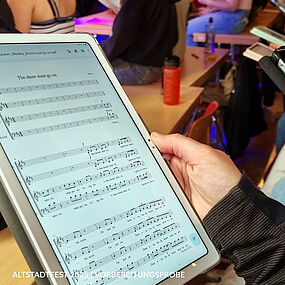 Am Chorprobentag (Mo, 19.05.) versammelte sich der Chor zur intensiven Auffrischung des Repertoires für die kommenden Veranstaltungen - Altstadtfest, Zukunftsmusik und das Chorabschlusskonzert Ende Juni. Im Mittelpunkt standen die Songs für das noch in derselben Woche stattfindende Altstadtfest, wo der Chor zum wiederholten Male eingeladen war.