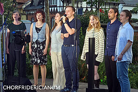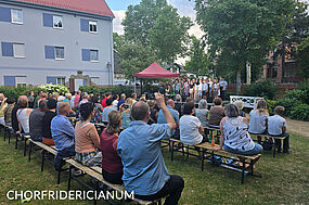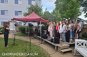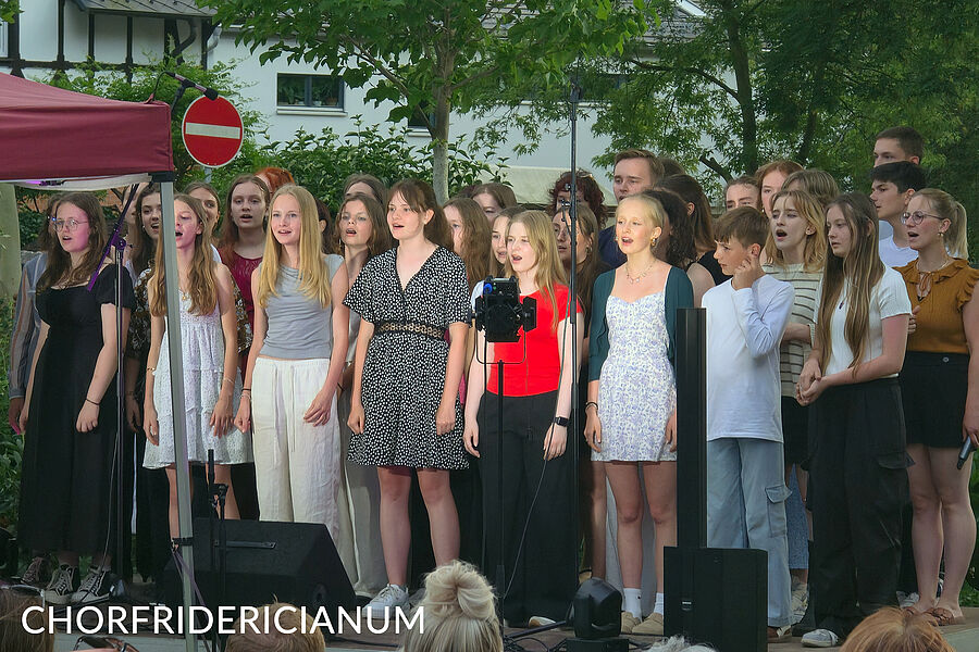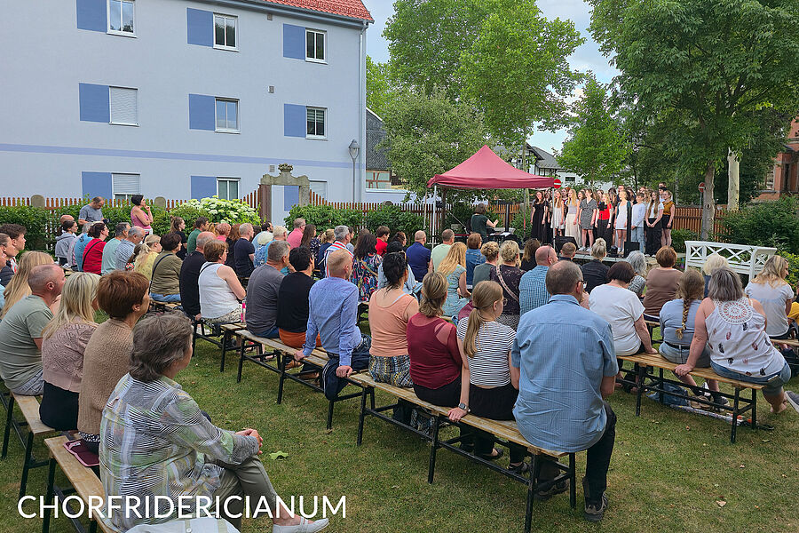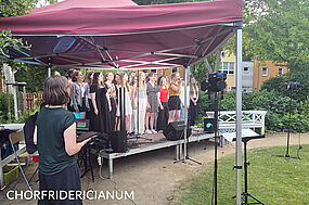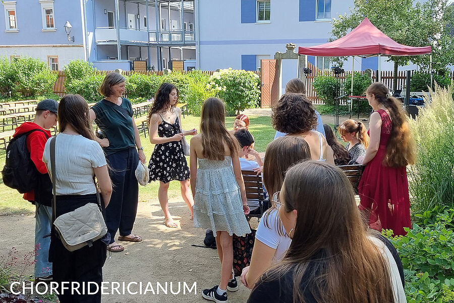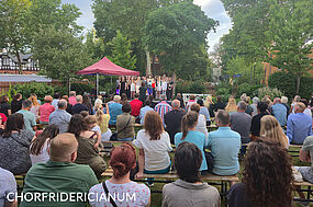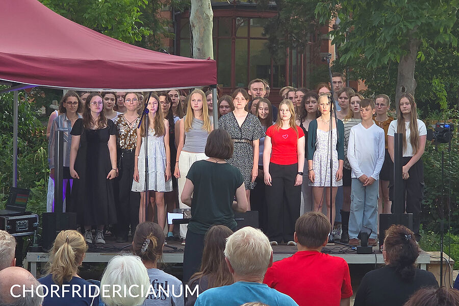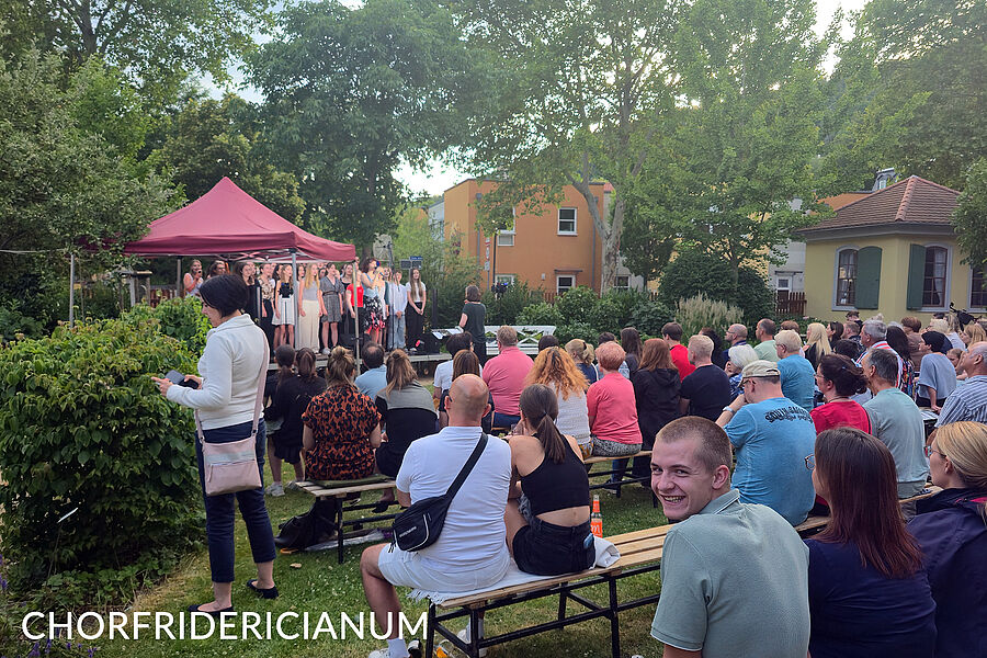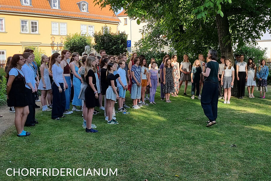 Am Ende des Schuljahres veranstalteten die beiden Chöre des Fridericianums ihr Chorabschlusskonzert im schönen Ambiente im Garten des Schillerhauses. Im letzten Jahr mussten die Chöre witterungsbedingt leider kurzfristig in die Aula des Fridericianums ausweichen. In diesem Jahr sollte aber - trotz Unwetterwarnung - das Konzert unbedingt wieder Open Air stattfinden.