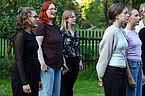 Gesungen wurden vor allem Songs vom Album RICHTIG:FALSCH, welches genau vor einem Jahr erschienen war. Dazu kamen einige "Klassiker" (wo auch unsere Neuen mit auf die Bühne gekommen waren) und auch bereits neue - gerade im Chorlager einstudierte - Songs. Als Solistin präsentierte sich erstmals Elea die bei "Little Numbers" glänzen konnte.