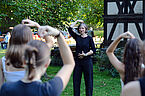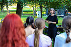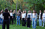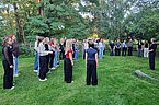 Dabei spielten sowohl das Wetter (welch schöner lauer Spätsommerabend!) als auch die tolle "Location" eine wichtige Rolle. Auch das zahlreich erschienene Publikum - hauptsächlich die Familien, Freunde der Choristen, aber auch einige LehrerInnen der Schule und ehemalige Choristen - war in bester Stimmung und so entwickelte sich eine wunderbare Konzertstimmung vom ersten Ton an.