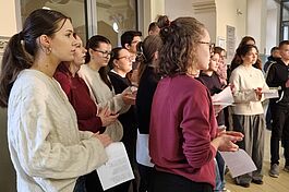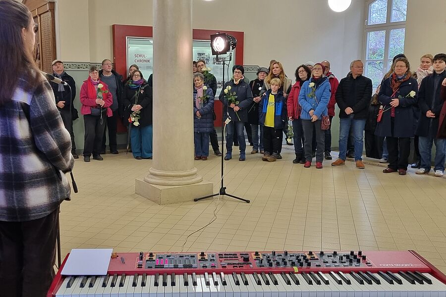 Der Schulchor begleitete die Veranstaltung mit bewegenden Liedern, die dem Gedenken einen würdevollen und berührenden Rahmen gaben.