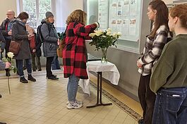 „Nie wieder" bedeutet, das Leid jedes Menschen ernst zu nehmen. Menschlichkeit darf keine Grenzen kennen. Diese Gedenktafel soll ein Ort des Innehaltens sein. Ein Ort, der uns daran erinnert, dass auch an unserer Schule Menschen verfolgt wurden, weil andere weggeschaut haben. Mögen wir daraus lernen, niemals wegzusehen- weder hier noch irgendwo sonst auf der Welt.
