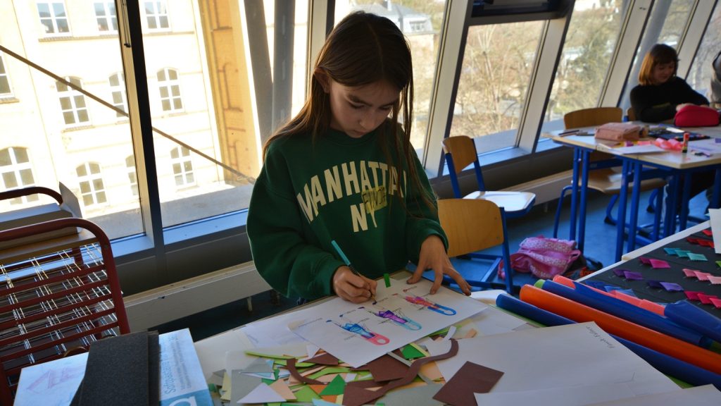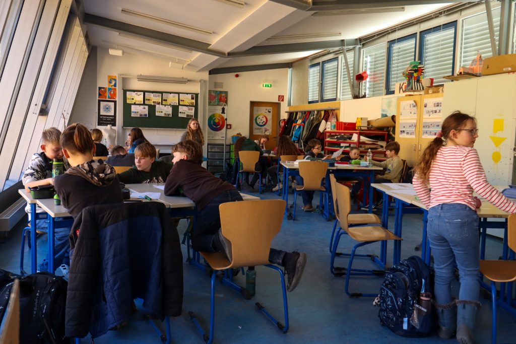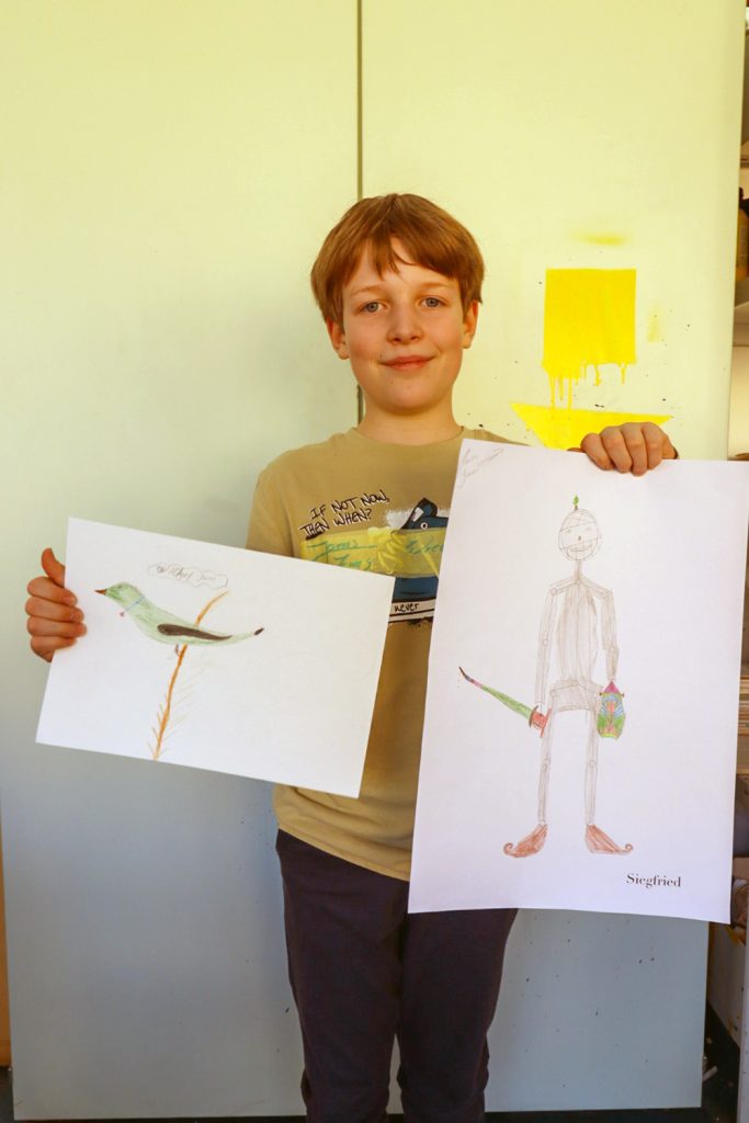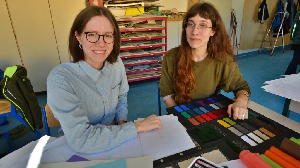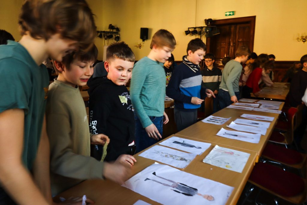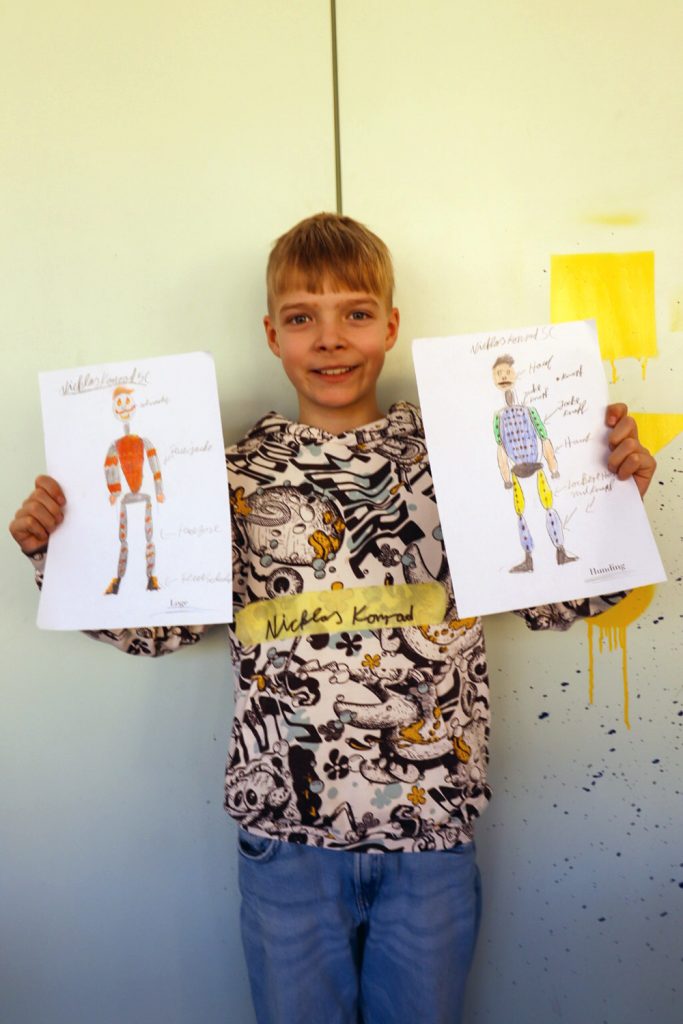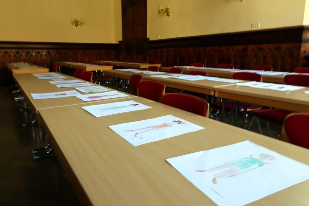 Zwei fünfte Klassen haben den Tag damit verbracht, mögliche Kostüme für die Inszenierung zu entwerfen – unter der Anleitung der Regisseurin des Stücks, der Studentin Leonie Haupt und Bühnenbilddesignerin Charlotte Brandhorst.