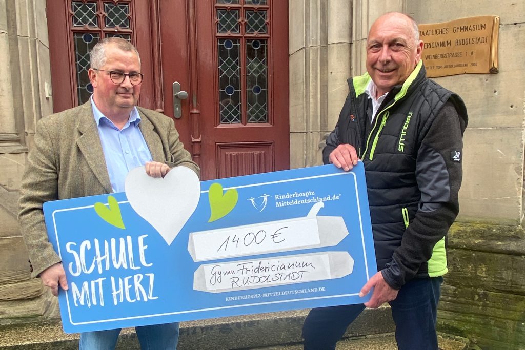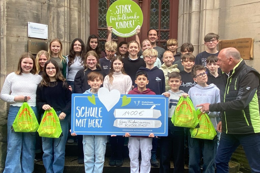 Am Montag, dem 30. März 2026, konnte die Klasse 6c stellvertretend für die Schulgemeinschaft des Gymnasiums Fridericianum einen Spendenscheck in Höhe von 1400 Euro an Herrn Köhler vom Kinderhospiz Mitteldeutschland übergeben.