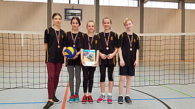 Zum Turnier traten vier Jungen- und 3 Mädchenmannschaften an. Im Modus "Jeder gegen jeden" wurden zwei Gewinnsätze bis 25 Punkte gespielt. Bei den Mädchen traf unser Team auf die RS Schiller und die RS Oberweißbach. Letztere galt als Favorit, da es dort eine rührige VB-Abteilung im ansässigen Verein gibt. Marlene, Paula, Leonie, Shalin und Lucy kamen schleppend in das erste Spiel gegen die RS Schiller, konnten sich aber zunehmend steigern. In einem hart umkämpften Spiel unterlagen die Mädels knapp in zwei Sätzen (25:22/25:21). Gegen die RS Oberweißbach hat man sich gleich zu Beginn konzentriert, führte auch zwischendurch und unterlag im ersten Satz mit 26:24. Die Mädchen aus Oberweißbach spielten im zweiten Satz mit Auge und Einsatz. Am Ende stand es 25:19. In der letzten Begegnung kam es zum Finalspiel zwischen der RS Schiller und der RS Oberweißbach. Der Sieger des Spiels gewinnt das Turnier und die Qualifikation für das Schulamtsfinale. Zuerst sah es nach einer klaren Angelegenheit aus. Die technisch sauberer spielenden Oberweißbacher siegten im ersten Satz deutlich. Im zweiten Satz sah es ganz nach einem weiteren Sieg aus. Doch Volleyball ist auch Kopfsache. Plötzlich wurden die Aufgaben verschlagen, die Bälle ins Aus gepritscht und die Mädchen der RS Schiller kämpften und witterten ihre Chance. Sieg für die Schiller-Mädels. Im entscheidenen dritten Satz schenkten sich beide Teams nichts. Mit wechselnder Führung konnten sich am Ende die Regelschülerinnen durchsetzen und haben sich somit für das Schulamtsfinale qualifiziert.