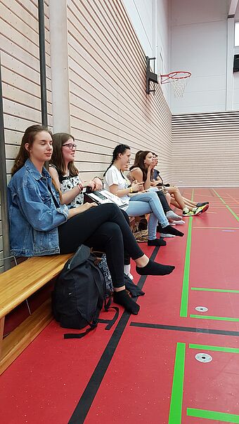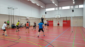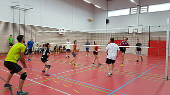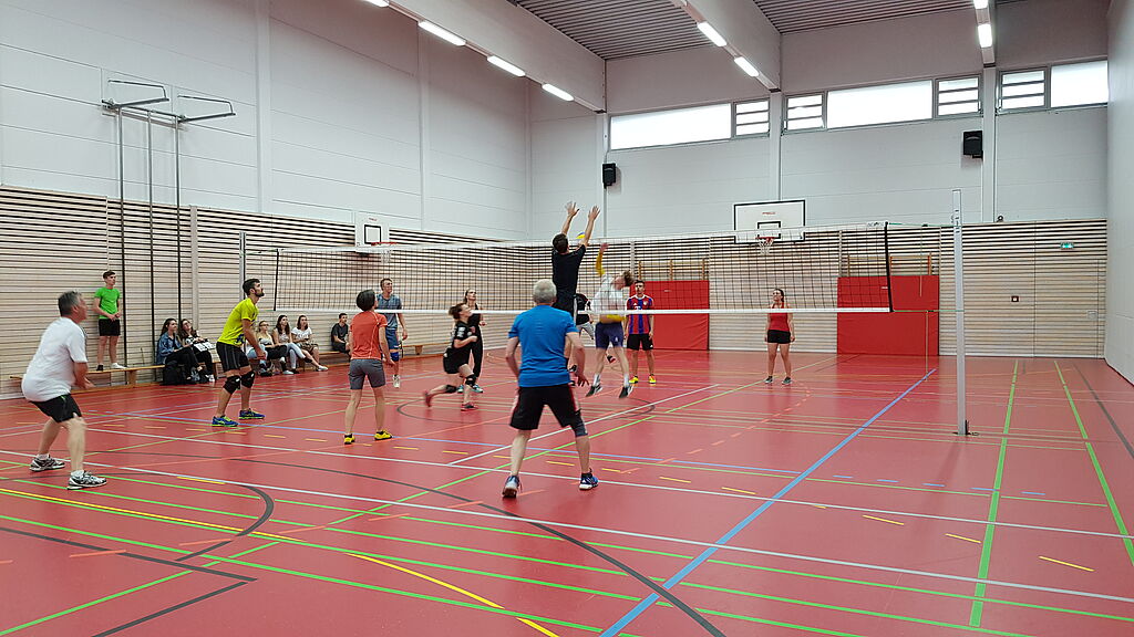 Das Traditionsspiel SchülerInnen 11 versus Lehrer fand ab 14.00 Uhr in der Turnhalle des Gymnasiums statt. Diesmal hatten sich die elften Klassen Verstärkung in Form von mehreren Zuschauern geholt - die Stimmung war dementsprechend gut.