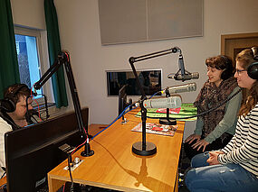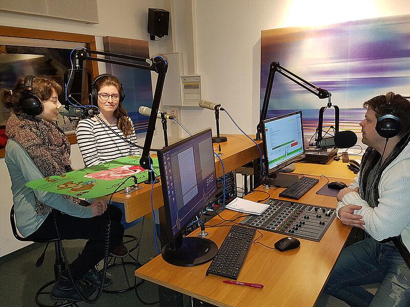 Neben einer Registrierungsaktion an unserer Schule am 26. Januar 2018, bei der bereits erfolgreich 43 neue potentielle Spender gewonnen werden konnten (siehe dazu hier), waren wir, Elisa Grubert und Sarah Horn, fast genau ein Jahr später, am 2. Februar 2019, zusammen mit Frau Gerber, die mit Maltes Mama befreundet ist, bei Hendrik Püschel im Studio des Radiosenders SRB.