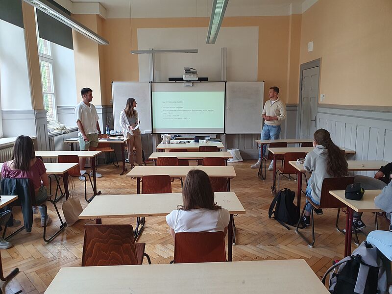 Sie führten mit den Schülerinnen und Schülern jeweils drei Workshops durch, in denen sie ihren eigenen Werdegang nach dem Abitur vorstellten und damit verbunden, auch immer ein spezielles Berufs- oder Studienfeld präsentierten.