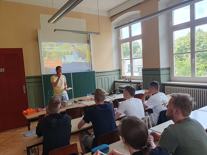 Am Montag, den 03.07.2023 fand auch in diesem Schuljahr wieder der „Tag der Studien- und Berufsorientierung“ statt. Zum traditionell in der letzten Schulwoche der Klassenstufe 11 stattfindenden Projekttag kamen auch in diesem Jahr wieder viele Absolventinnen und Absolventen sowie einige unserer Partner aus der Region an unsere Schule.