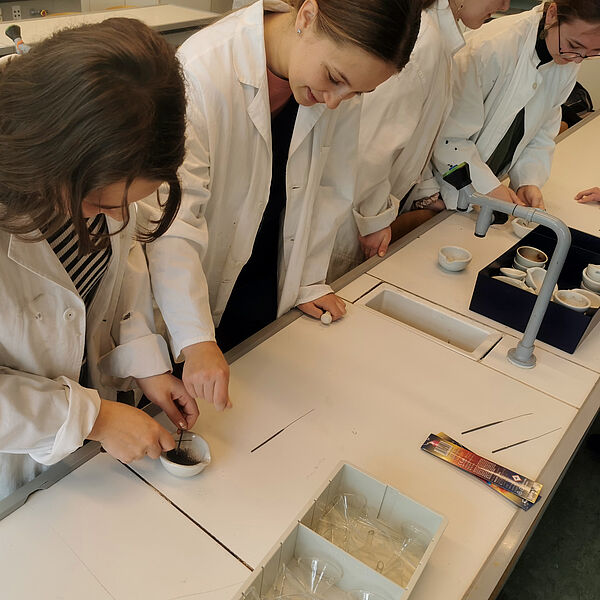 Im Unterricht ist häufig nicht genügend Zeit, um aufwendigere Experimente durchzuführen oder sie passen einfach nicht in den Lehrplan. In der Chemie-AG spielt dies alles keine Rolle. Hier werden Experimente nach Interessen der Schüler und Schülerinnen (und Lehrer) ausgewählt, durchgeführt und die chemischen Hintergründe erläutert - ganz ohne Leistungsdruck. So wurden zu den ersten beiden Treffen unter Leitung von Herrn Eschrich und Herrn Krünes Wunderkerzen unter die Lupe genommen, die überraschend großes Potential für chemische Untersuchungen bieten.