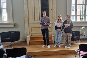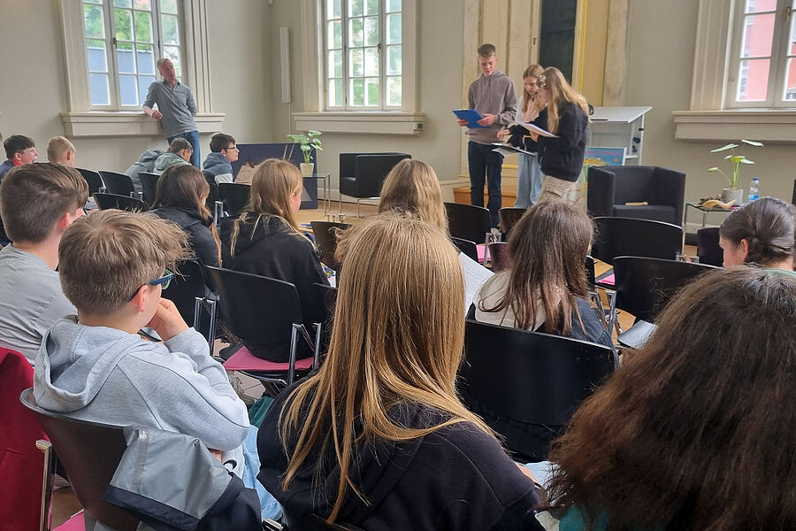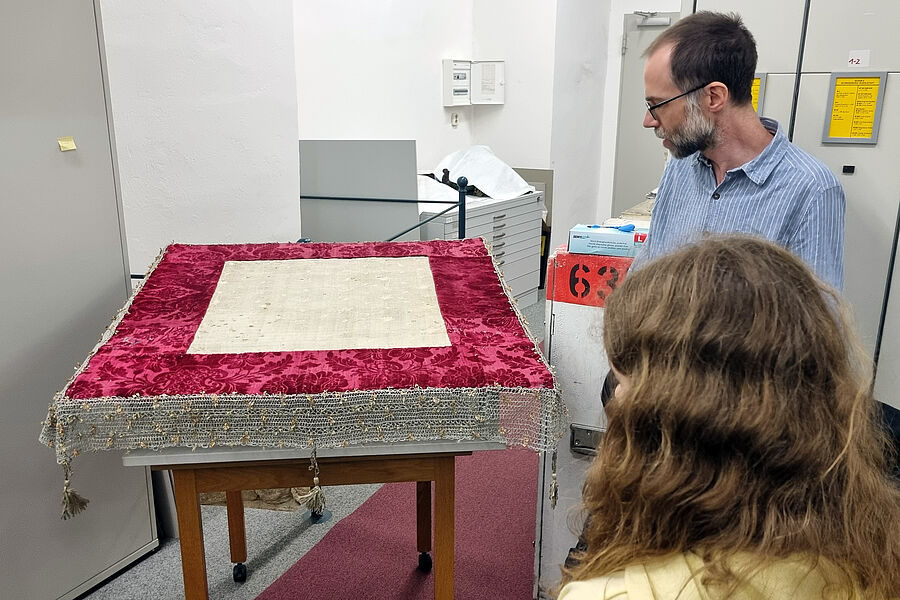 Auch in Rudolstadt gab es eine kleine aktive jüdische Gemeinde. Ihren Spuren folgten die Sechstklässler am Freitag auf einem kleinen Stadtrundgang. Außerdem öffnete die Heidecksburg die ansonsten für den Besucherverkehr geschlossenen Türen des Archivs, damit die außergewöhnlichen textilen jüdischen Sammlungsstücke betrachtet werden konnten. Vielen Dank von uns an die Mitarbeiter und Mitarbeiterinnen der Burg, die dies ermöglicht haben!