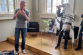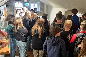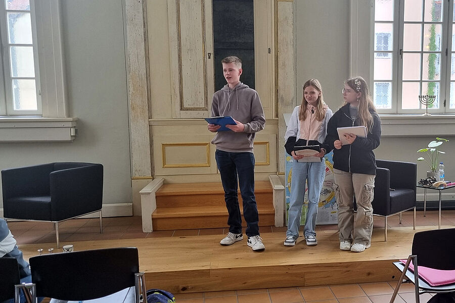 Des Weiteren zeigten die Mädchen und Jungen in der Begegnungsstätte „Kleine Synagoge“ was sie bereits gelernt hatten und nutzten die Gelegenheit, viele Fragen zu stellen, um jüdisches Alltagsleben noch besser zu verstehen. Auch heftiges Regenwetter hielt uns nicht davon ab, die mittelalterliche Mikwe an der Gera zu besuchen und zu erfahren, welche Bedeutung dieses Ritualbad für das jüdische Leben im Mittelalter besaß.