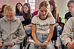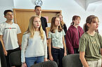 Der Montag startete - wie an jedem Tag - mit einem leckeren Frühstück um 08.00 Uhr - alle waren (wie an jedem Tag) pünktlich am Tisch. Danach gab es noch etwas Freizeit (Tischkicker und Tischtennis waren sehr beliebt) - auch Hausaufgaben wurden in dieser Zeit erledigt, bevor 09.30 Uhr der Probentag mit einem aktivierendem Einsingen begann. Anschließend wurde zusammen oder in den Stimmgruppen geprobt.