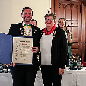 Ein besonderer Moment der Versammlung war die Ehrung von Stefan Fasold, der für sein unermüdliches Engagement mit dem Goldenen Verdienstorden des BDK ausgezeichnet wurde. Die Übergabe durch Angela Clement vom Landesverband Thüringer Karnevalvereine e.V. wurde von den Anwesenden mit großem Applaus gewürdigt. Die Mitgliederversammlung endete mit angeregten Gesprächen, Austausch und viel Vorfreude auf das kommende Vereinsjahr.