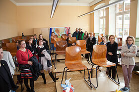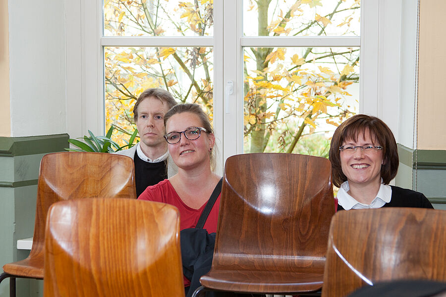 Fröhlich und gespannt trafen wir uns im Foyer unserer alten Penne. Zu unseren Zeiten ging man eher selten zum Haupteingang hinein. Man mag es kaum glauben, aber nach erst 25 Jahren tuschelten wir doch, wer der oder die ein oder andere wohl sei. Die Auflösung gab es nach dem Schulrundgang spätestens in der Aula bei Übergabe der Fotomappen.