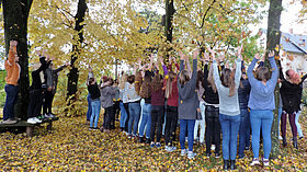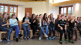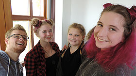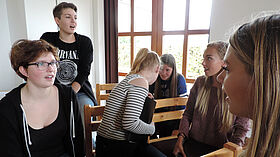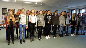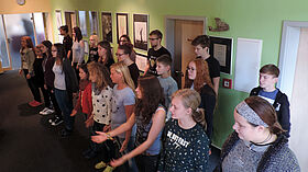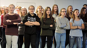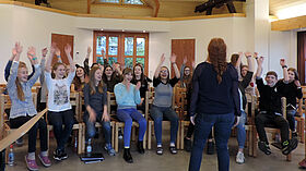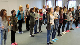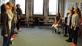 Nachdem am Montag auch noch die letzten Chorschüler aus ihrem Ferienurlaub eingetrudelt waren, konnte es richtig losgehen. Wir verbrachten den Tag damit, zusammen mit Frau Ulrike Lenz neue Choreografien für "Renegades" und "For all lovers" zu entwerfen und altbekannte, wie "Optimistisch" und "Adiemus" noch einmal aufzufrischen.