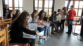 Nach der Anreise am Sonntagabend begannen wir, unsere Zimmer aufzuteilen, zu beziehen und die ersten Lieder gemeinsam zu proben.