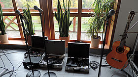 Ab 17.00 Uhr saßen wir alle in unserem Proberaum, dem "Backhaus" und warteten gespannt auf die Live-Übertragung der Radiosendung, wo unsere neue Chor-CD vorgestellt werden sollte. Herr Haupt war zusammmen mit Lena, Laura, Laura und Peter Merkel nach Saalfeld ins SRB-Studio gefahren, um mit Hendrik Püschel über die Entstehung der CD und unseren Chor allgemein zu plaudern. Während des Interviews wurden nicht nur die Termine mit unseren Chorauftritten bekannt gegeben, sondern auch live das Lied "Little Numbers" angestimmt.