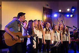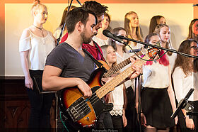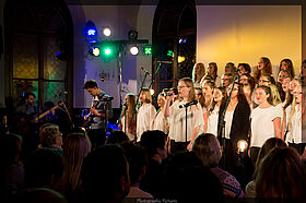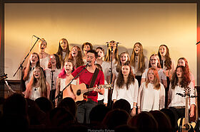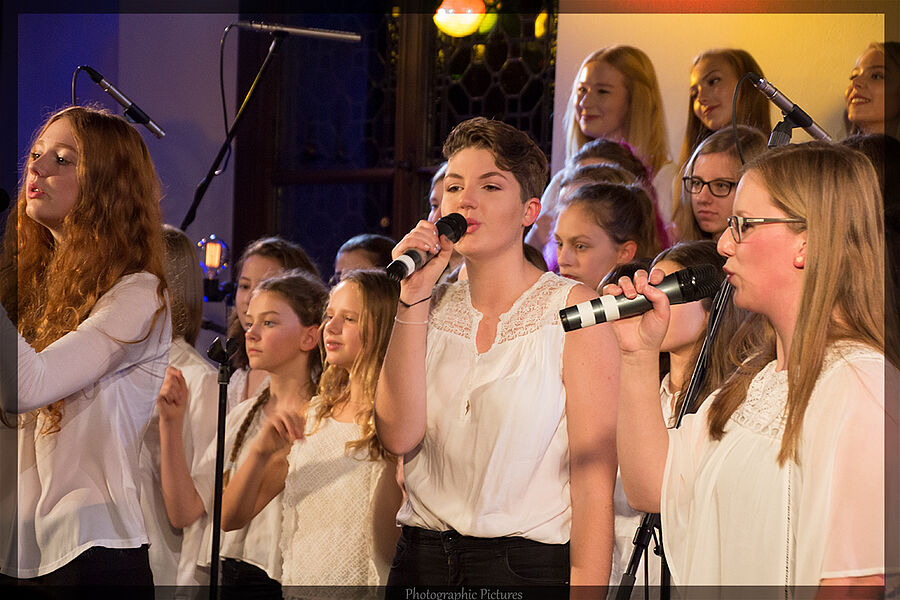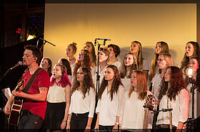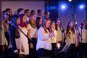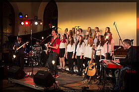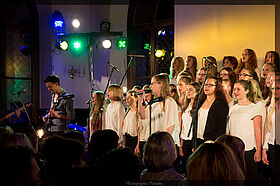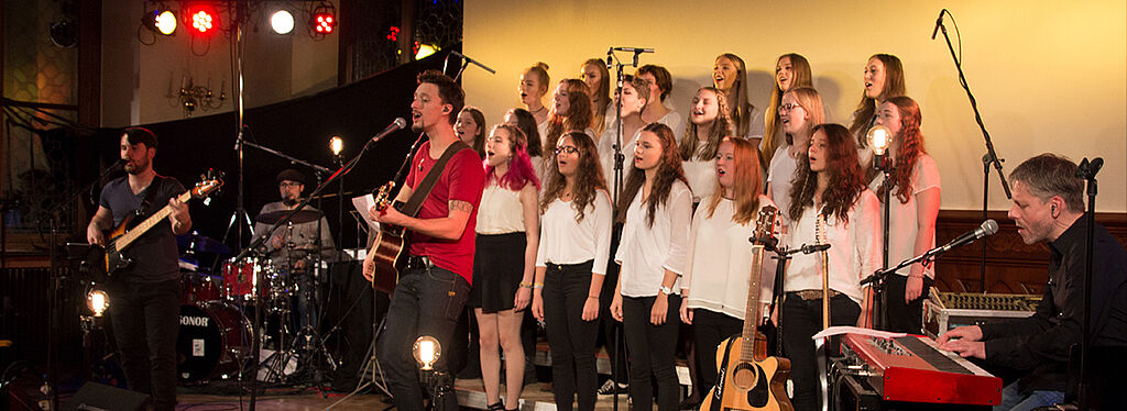 Zu hören war ein spannender Mix aus schwungvollen, emotional anrührenden und provozierend nachdenklich machenden Songs, mit denen sich die jungen Sänger hörbar identifizierten – mal a cappella dargeboten („Jar of hearts“ von Christina Perri), mal groß orchestral untermalt („Neustart“ von Joris), dann wieder sparsam nur mit Klavier („All of me“ von John Legend) oder opulent mit voller Bandbesetzung begleitet („Renegades“ von X Ambassadors).