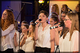 Charmant moderiert wurde der Abend von Paula und Chantalle (beide Kl. 10), die als erstes den Nachwuchschor auf die Bühne baten, der ja auf der CD breits mit einem Lied vertreten ist.