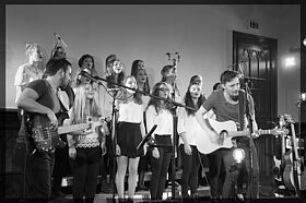 Wenige Tage nach dem Chorlager besuchte der Chorleiter Volkmar Haupt die Band WILHELM in ihrem Probenraum in Leipzig, um die instrumentale Begleitung der neuen Chorlieder einzustudieren. Der Sänger der Band - Maximilian Wilhelm - war selbst einige Jahre Mitglied des Schulchores und trat schon oft als musikalischer Begleiter des Chores neben seinem langjährigem Partner Volkmar Haupt in Erscheinung (zuletzt beim Altstadtfest 2015).