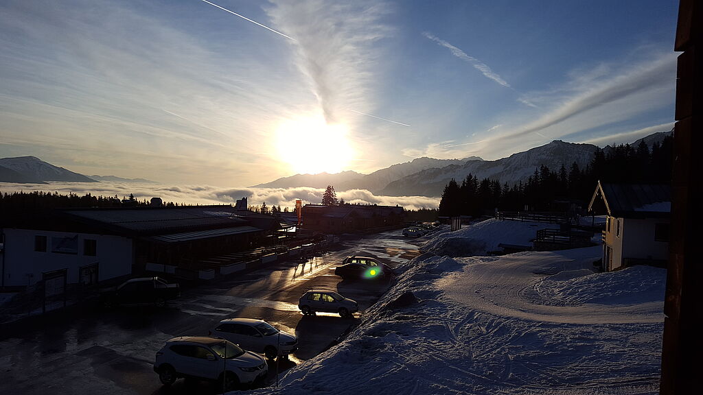 Jeden Tag begrüßte uns die Sonne mit einem herrlichen Sonnenaufgang. Ein stärkendes Frühstück - ab ging es auf die Piste. Die Fortgeschrittenen fuhren die Pisten des Plattenkogels ab und die Anfänger übten am Vormittag die Grundschritte des Skifahrens, um am Nachmittag die ersten Liftfahrten mit dem Tellerlift zu wagen. Von Tag zu Tag wurden die Skier sicherer beherrscht und auch schwierigere Pisten in Angriff genommen. Die Fortgeschrittenen inspizierten die Umgebung des Isserkogels - für die Anfänger waren die heimischen Pisten Herausforderung genug. Jeden Abend verabschiedete sich die Sonne mit einem glühenden Sonnenuntergang (so mancher Schüler glühte auch ...).
