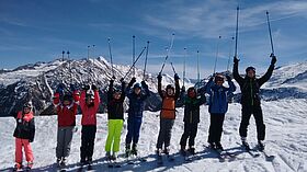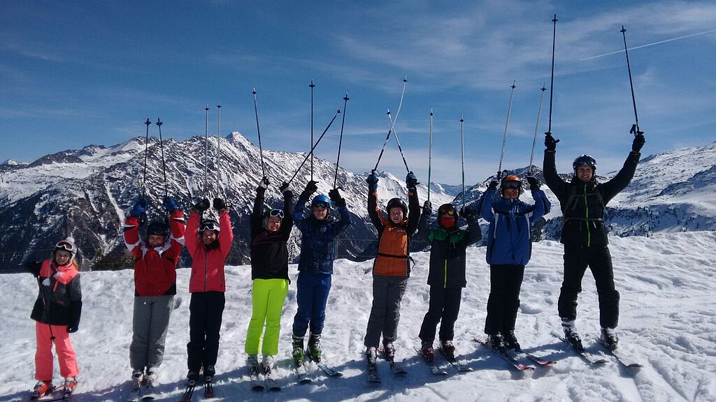 Nach dem Genehmigungskrimi um die Durchführung des Skilagers konnte es nur besser werden. Am Samstag starteten bei sommerlichen Temperaturen 52 motivierte SkifahrerInnen Richtung Österreich in die Hohen Tauern. Die Busfahrt endete mit einer neuen Bestzeit gegen 17 Uhr in unserem Skigebiet "Gerlossplatte". Sofort wurde die spartanische Unterkunft bezogen, die Gegend erkundet und das Abendbrot eingenommen. Am Abend wurde den SchülerInnen das Skigebiet vorgestellt und sich humorvoll-hinterlegt mit den Pistenregeln vertraut gemacht. Mit einem Meter Schnee auf der Piste war die Sicherheit gegeben, dass es bis zum Kursende reicht. Und so war es auch.