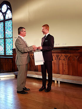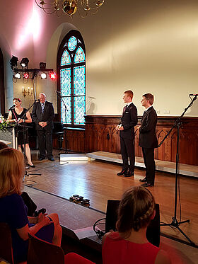 Traditionsgemäß wurden die besten Abiturienten vom Verein der Freunde des Gymnasiums mit Unterstützung des Rotary Clubs Rudolstadt sowie vom Partnerbetrieb Siemens ausgezeichnet. Erstmalig wurden die vom Verein neu gestifteten "Friderica" und "Fridericus" an die Abiturienten David Fandrei, Janik Huster und Vreni Röder übergeben. Hiermit soll eine weitere Tradition begründet werden.