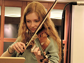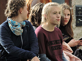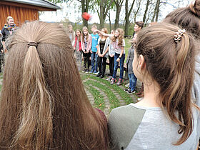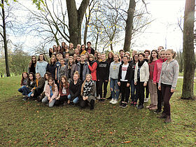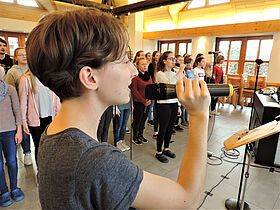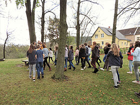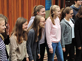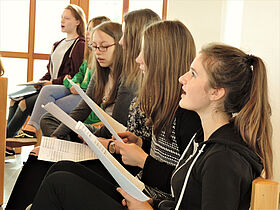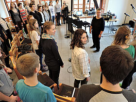 Am Montag besuchte uns Frau Lenz, Theaterpädagogin am Theater Rudolstadt, die mit dem Chor wie bereits im letzten Jahr in mühevoller Kleinarbeit neue Choreografien für unsere Lieder gemeinsam mit uns erarbeitete. Weiterhin wurden auch unsere neuen Chorschüler Stück für Stück an unser breit gefächertes Repertoire heran geführt.