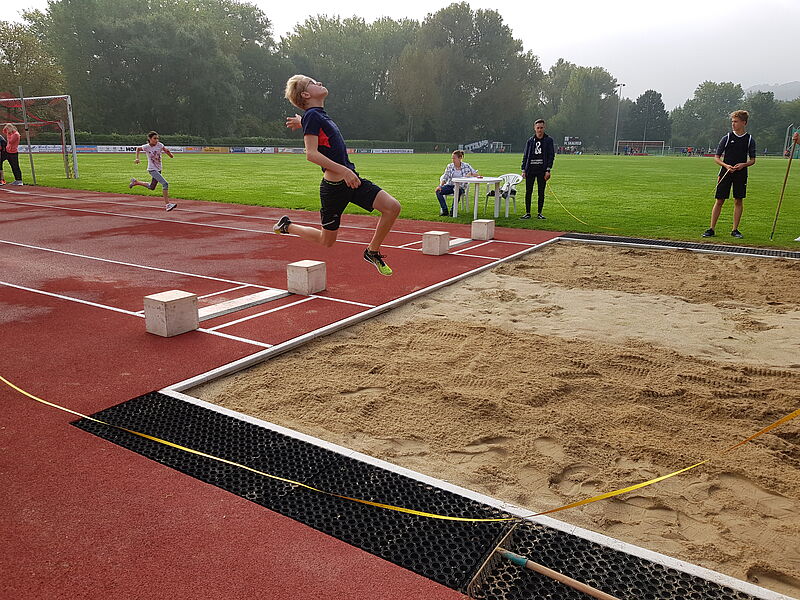 Bei optimalem Wetter kämpften ca. 27 Mannschaften in den Wettkampfklassen II und III um den Einzug ins Schulamtsfinale. Unsere Teilnehmer waren motiviert ihr Bestes zu geben und dadurch entstanden spannende Vergleiche bei den technischen Disziplinen (Hochsprung/Kugel/Speer/Wurf): In der WK II m übersprang Evan Häußer im Hochsprung 1,66 cm, in der WK II w Laura Jahn mit 1,50 cm und in der WK III m Ricky Stroehl 1.47 cm. In den Sprintdisziplinen waren alle Teams im vorderen Feld vertreten. Luft nach oben gab es vor allem im Weitsprung. Am Ende wurde es noch einmal spannend - die Jungen der WK II waren auf dem 3. Platz gelistet. Aufmerksame Schüler und ein mitstoppender Betreuer konnten nach einem gerechtfertigten Einspruch die Wertung korrigieren.