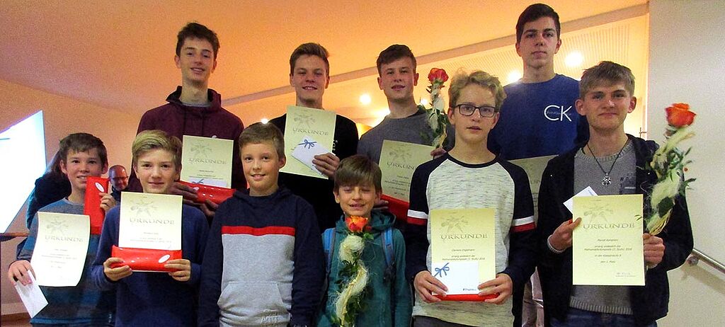 Ein besonderes Lob verdient Tristan Piater, der seit Klasse 9 viermal hintereinander Kreismeister wurde. Lukas Conrad, Marcel Kampioni und Tristan Piater erreichten sehr hohe Punktzahlen und haben eine berechtigte Hoffnung auf eine Nominierung zur Landesolympiade, die Ende Februar stattfinden wird.