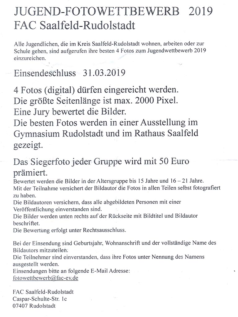 Gleichzeitig möchte der Fotograf die Jugend für einen Fotowettbewerb gewinnen, wobei wir Ihn gerne unterstützen. Hierzu stellen wir den Aufruf auf unserer Homepage zur Verfügung.