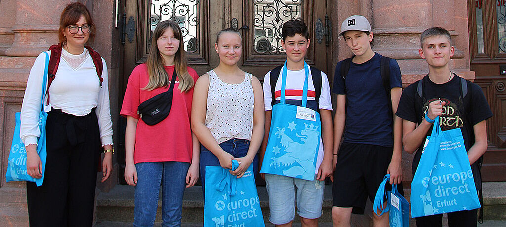 Gemeinsam fuhren alle zur Auszeichnungsveranstaltung ins Goethe–Gymnasium Rutheneum Gera.