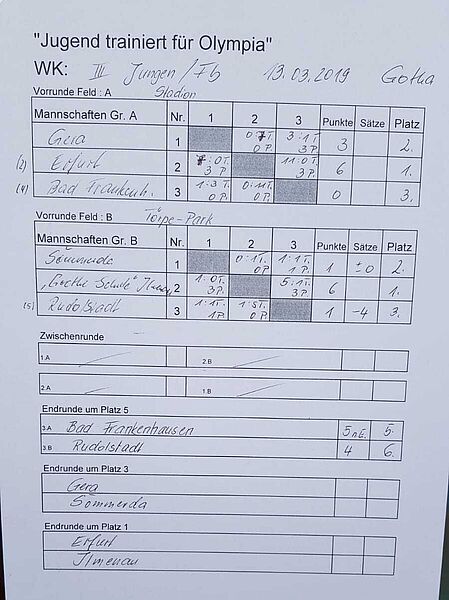 Im ersten Spiel einer Dreiergruppe erreichten die Schüler ein 1:1 gegen das Gymnasium Sömmerda. Mit einer besseren Chancenverwertung hätten unsere Jungs aber durchaus einen Sieg verdient gehabt. Im zweiten Spiel der Gruppe musste das Team dann die spielerische Überlegenheit der Vertretung vom Gymnasium Ilmenau anerkennen und sich mit 1:5 geschlagen geben. Damit stand der dritte Platz in der Gruppe zu buche und somit nur noch das Spiel um Platz fünf gegen GY Bad Frankenhausen aus. In einem packenden Elfmeterschießen ging leider auch dieses Spiel mit 5:6 verloren. Dennoch können die Schüler stolz auf das Erreichen des Landesfinals sein. Mit etwas mehr Abgebrühtheit vor dem Tor im ersten Spiel, wäre auch das Spiel um Platz drei drin gewesen.