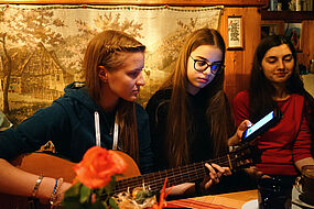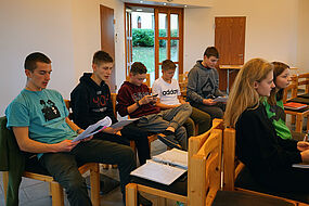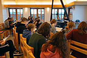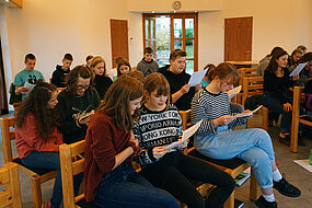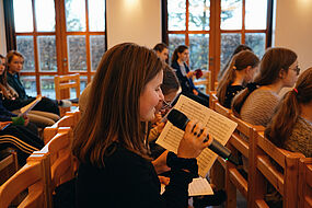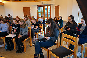 Schon kurz nach der Ankunft im herbstlich-nebeligen Schwarzenshof begannen die Proben, die am Montag und Dienstag intensiv fortgesetzt wurden. Mit viel Ausdauer saßen auch nach offiziellem Probenschluss einige Solisten noch beisammen und probten ihre Solostellen. Vor allem unsere Chorsänger*innen der Oberstufe saßen zu dieser Zeit oft noch lange beisammen und erledigten mit noch nie dagewesener Ausdauer und Akribie ihre schulischen Hausaufgaben bzw. arbeiteten die gerade versäumten Unterrichtstunden des jeweiligen Tages nach. Chapeau!