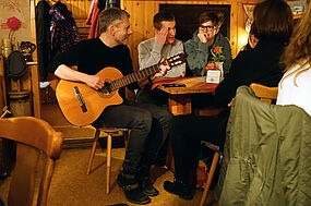 Am letzten Tag konnten die neuen Songs und auch einige einstudierte Weihnachtslieder die zu Besuch gekommene ehemalige Chorleiterin Frau Naumann schon recht gut musikalisch überzeugen - Grund genug, den Abend traditionell in der Gaststätte "Zur Liske" ausklingen zu lassen. Bei einem Getränk und viel Gesang mit Gitarrenbegleitung war die Stimmug wieder auf einem schönen Höhe- und Schlusspunkt.